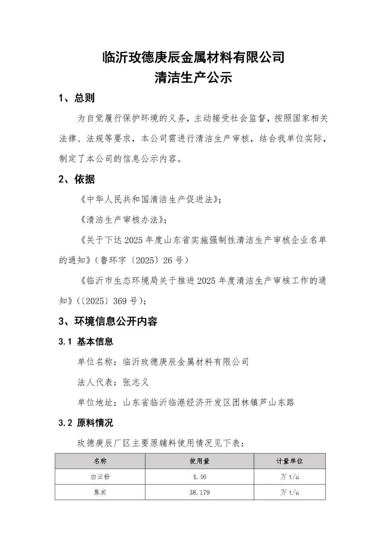 临沂玫德庚辰金属材料有限公司 清洁生产公示